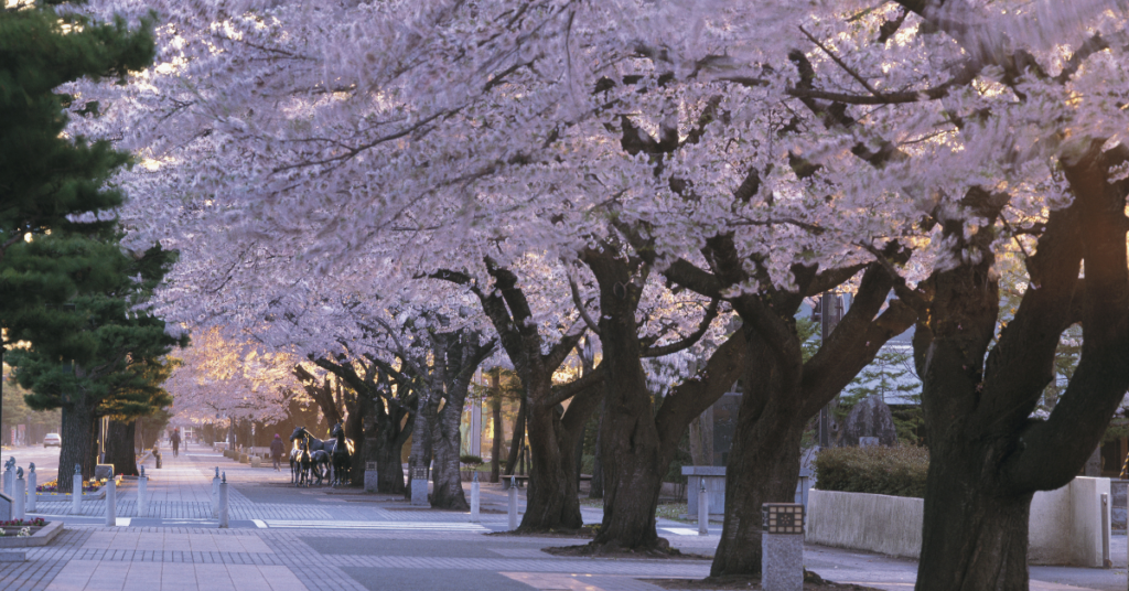 現在の桜と松の並木も、その名残。春には155本の桜が咲き誇り、十和田市観光の春の名所として人気です。